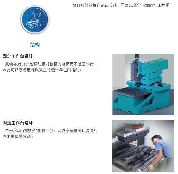 应用范围:牧野精密电火花机床的介绍中大型尺寸电火花机床集结牧野先进的加工技术,传递显著的加工性能和提高操作便捷性。 牧野悠久的机床制造传统,孕育出稳定可靠的机床性能牧野精密电火花机床的固定工作台设计 此轴布局由于是移动相对较轻的电极而不是工作台,因此可以高精度地反复进行微米单位的摇动。固定工作台设计 牧野精密电火花机床由于移动了较轻的电极一侧,可以高精度地反复进行微米单位的摇动。MPG导航牧野火花机有上百种